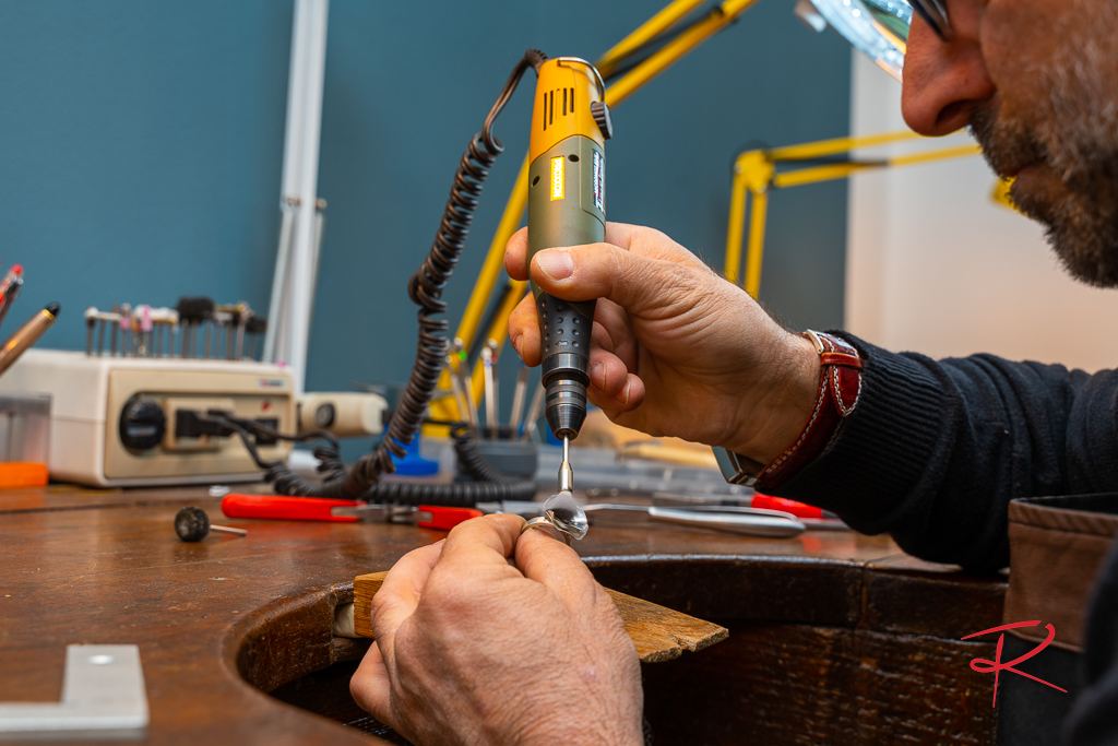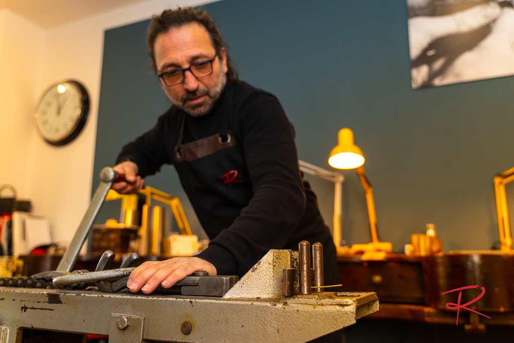 Maestro orafo presso la Scuola Orafa Ambrosiana di Milano, dove, ad oggi, conserva un suo spazio per lavorare e continuare ad apprendere questa arte dove, ci ricorda, non si smette mai di studiare e perfezionarsi. La scelta di Milano come base di un suo laboratorio non è casuale.